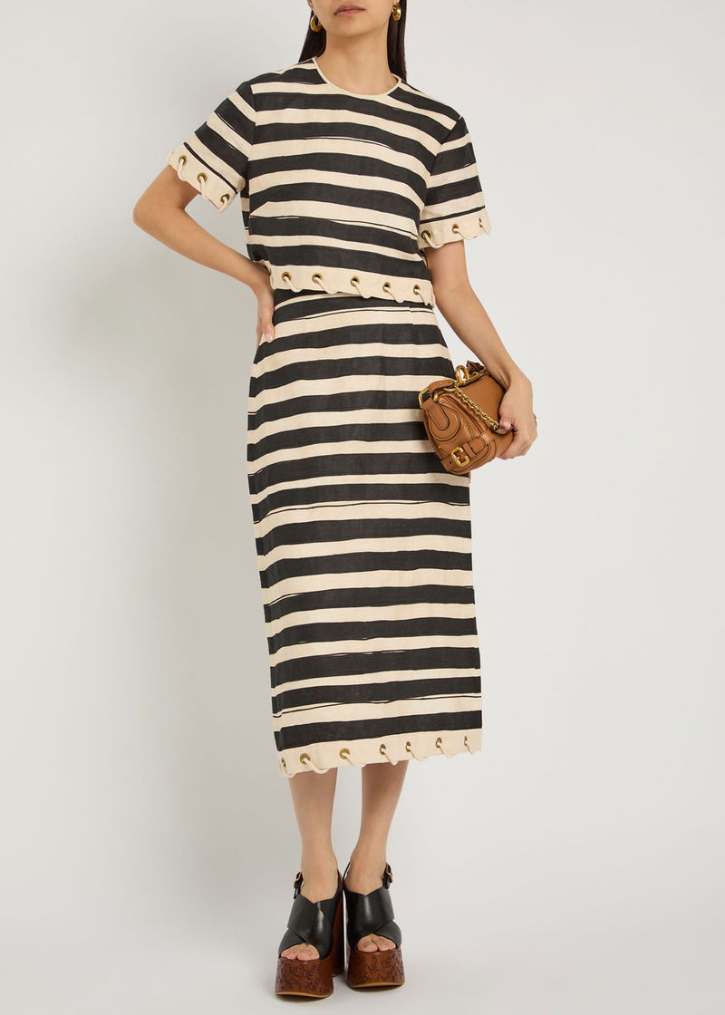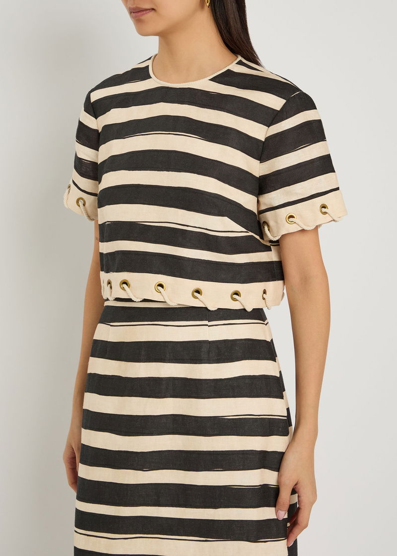 Made with at least 50% linen. Linen is made from the fibres of the flax plant. Flax is resilient and can grow in poor soil, using less water than cotton to produce.'