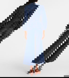 Flared jeans, Denim, Stitched front creases, Satin trims, Belt loops, High-rise cut, Button and concealed zip fastening at front, Non-stretchy fabric, Mid-weight fabric.