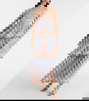 Featuring a billowy silhouette, this maxi dress from Zimmermann takes inspiration from native wildlife. Following a heartfelt commitment to craftsmanship, the macrame belt is woven with beads which exquisitely repeat up the neckline. The dress comes with a matching slip, completing this stunning selection for your summer wardrobe.