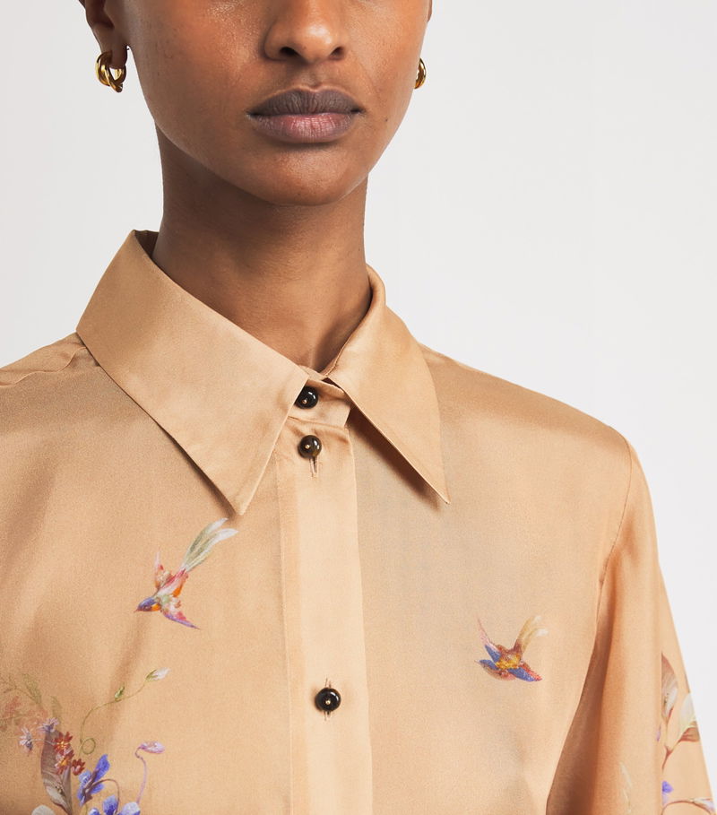Zimmermann's Resort 2026 collection is a poetic ode to bohemian elegance, where sun-drenched florals and fluid silhouettes capture the essence of island life. This shirt, crafted from featherlight silk habutae, pairs perfectly with the matching trousers for a look that transitions from sunbed relaxation to beach-club fun.