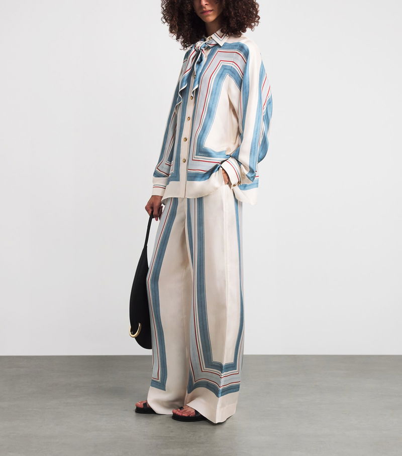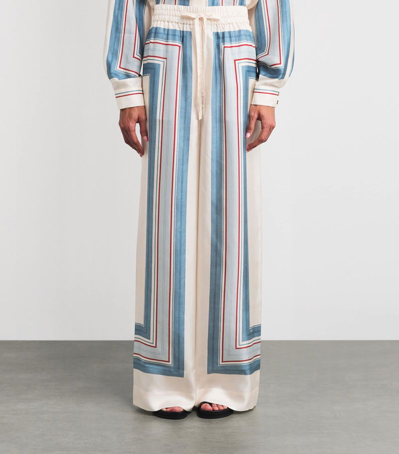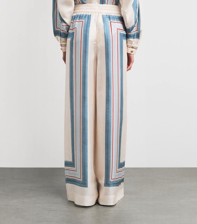 Titled Twisted Romance, Zimmermann's Cruise 2026 collection draws inspiration from nostalgic tales of pirates and the extravagance of the New Romantics movement. A play of soft, fluid fabrics and boldness unfolds with pieces like these Track trousers, cut from pure silk imbued with statement stripes.
