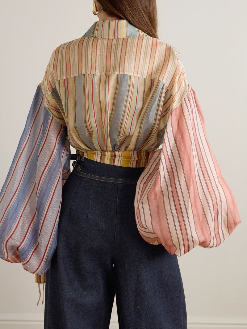 Zimmermann says that its Resort '26 collection is inspired by "nostalgic pirate tales and the drama of the New Romantics". This wrap blouse is made from striped linen and silk-blend for a patchwork effect and has oversized, billowy sleeves. Wear yours with high-waisted pants.
