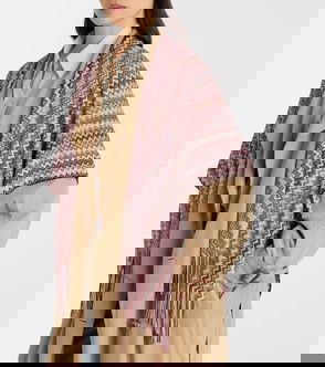 Scarf, Striped, Merino wool-blend, Ribbed trims, Fringed trims.