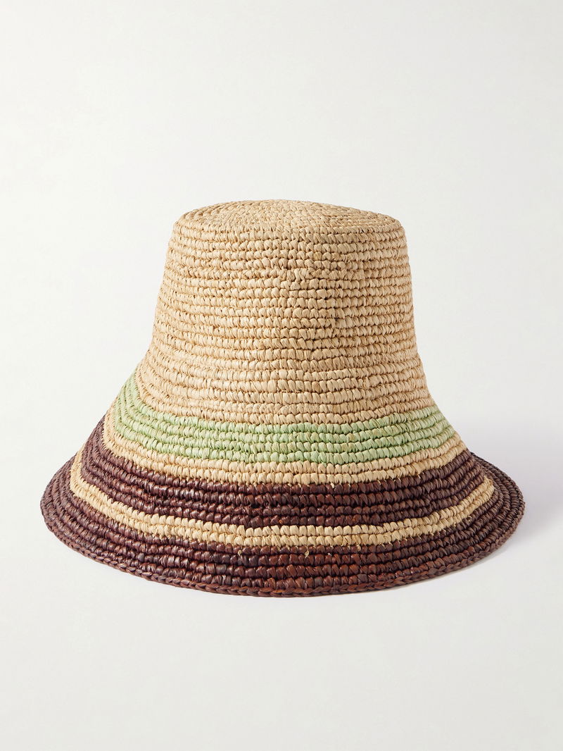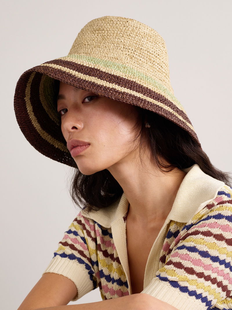 Zimmermann's bucket hat is perfect for protecting you from the sun. It's crafted from woven raffia and patterned with a trio of stripes around the wide brim. Pack it for beach breaks.