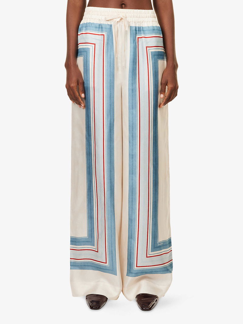 Zimmermann silk trousers. Loose fit, elasticated waist, ticking stripe pattern.