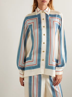 Set sail with Zimmermann and its latest seafaring creation, the Tiggy top. Plucked from the label’s SS23 collection which conjured sailor-inspired ensembles and strawberries-and-cream mini dresses, this picnic-primed design is shaped with billowing sleeves poised off the shoulder to reveal the lines of your decolletage. Then, just to guarantee you slip on this silk style on your next tropical travels, it’s splashed in diagonal stripes and crowned with a nautical bow at the neckline.