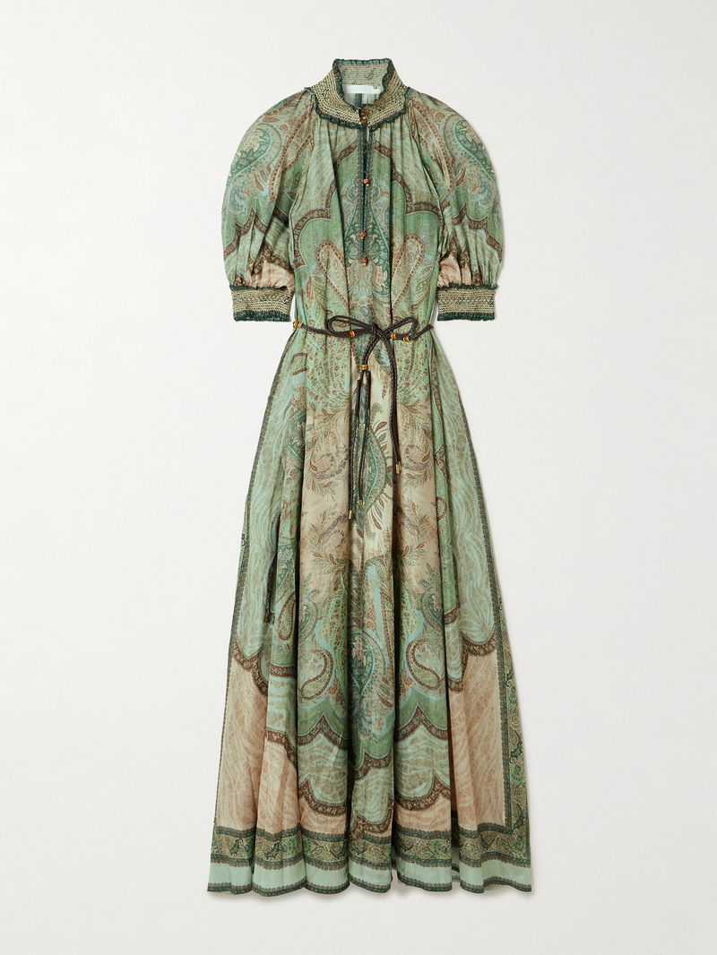 Zimmermann's midi dress has billowy sleeves with shirred cuffs, accentuating their puffy shape. It's cut from silk-habotai that's printed with intricate paisley florals, mirroring vintage tapestries.