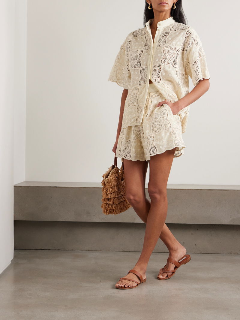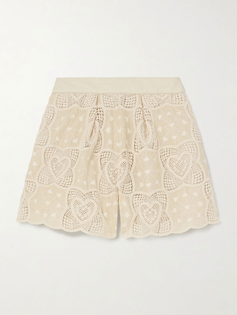 Wanderlust Crocheted Embroidered Cotton-blend Shorts