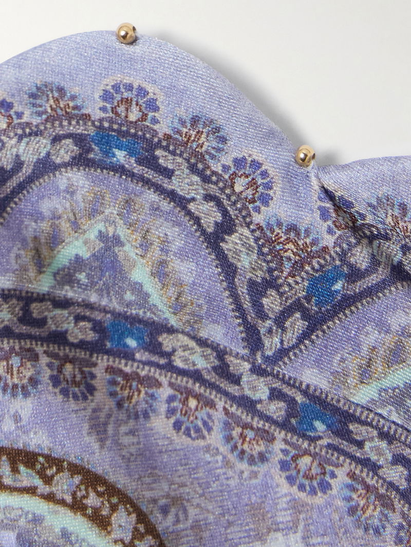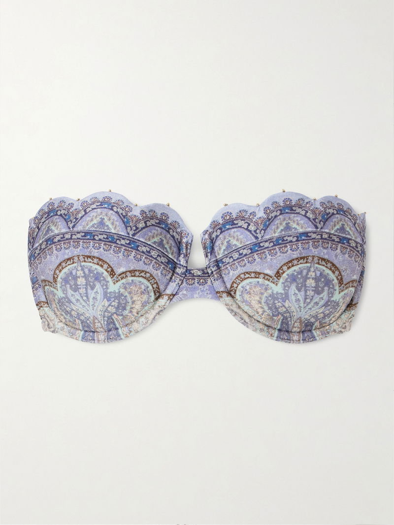 Zimmermann's aptly named 'Wanderlust' bikini has a carefree, bohemian vibe. It's made from stretch fabric printed with paisley swirls and has undewired cups with tiny gold-tone beads adorning the scalloped tops.
