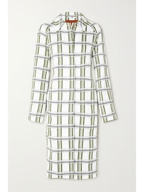 Leather-Trimmed Pleated Checked Wool Mini Skirt