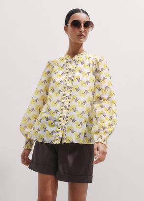 Silk Cotton Bird Of Paradise Print Blouse