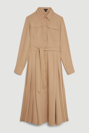 Soft Tailored Pleated Pocket Detail Midi Shirt Dress