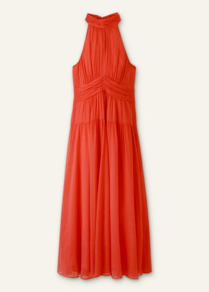 Silk Little Oak Leaf Print Midi Dress + Tie