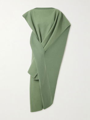 Knot-Detailed Gathered Chiffon-Trimmed Silk-Satin Maxi Skirt