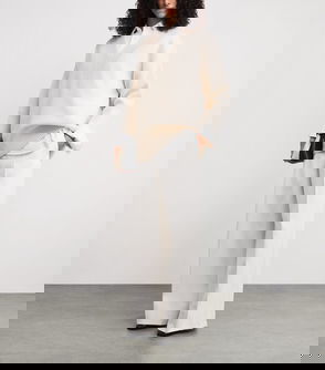 Cashmere-Blend Two-Tone Cable-Knit Sweater