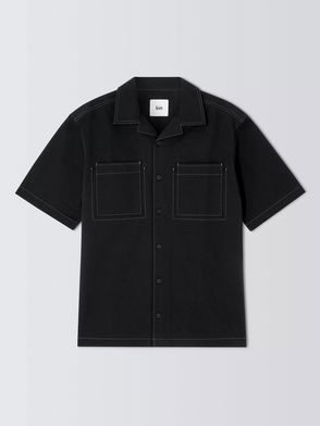 Short Sleeve Topstitch Cotton Shirt, Meteorite