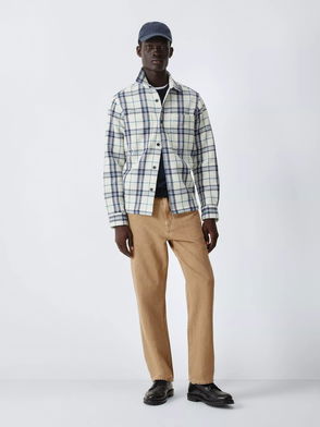 Check Cotton Waffle Knit Shirt, Ecru/Blue