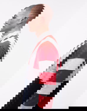 Relaxed Fit Archieve Rugby Shirt In Navy & Red Stripe