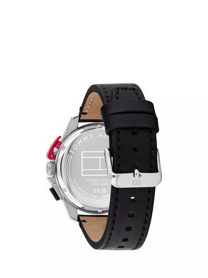 1792258 Men's Round Leather Strap Watch, Black