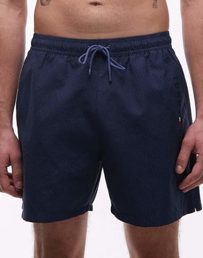 Textured Drawstring Zip Swim Shorts In Blue