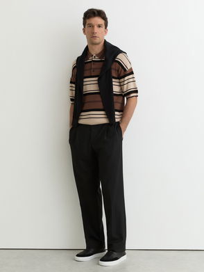 Stripe Knit Half-Button Polo Shirt In Camel Multi