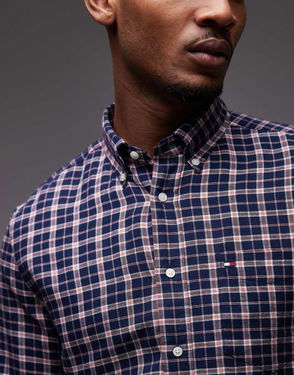 Brushed Linen Medium Check Shirt In Navy