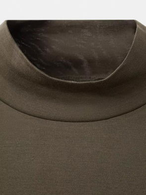 Luton Cotton Slim Fit High Neck T-Shirt, Dark Brown