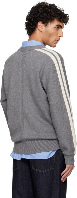 Wool-Cashmere Stripe Buttoned Jumper In Neutral/Brown
