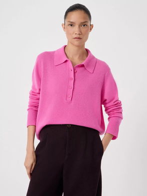 Clove Cashmere Rich Polo Jumper, Magenta Pink
