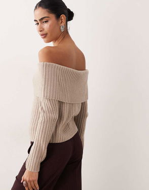 Abercrombie & Fitch Off Shoulder Foldover Jumper In Oatmeal
