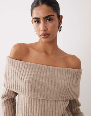 Abercrombie & Fitch Off Shoulder Foldover Jumper In Oatmeal