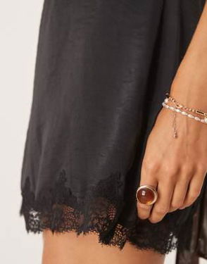 Abercrombie & Fitch High Rise Lace Detail Satin Mini Skort In Black