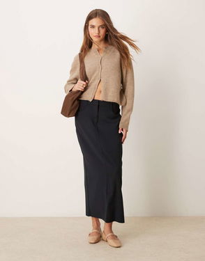 Abercrombie & Fitch Mid Rise Tailored Maxi Skirt In Black