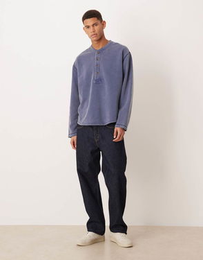 Abercrombie & Fitch Henley Sweatshirt In Washed Indigo