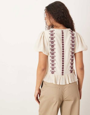 Abercrombie & Fitch Boho Embroidered Short Sleeve Top In Cream