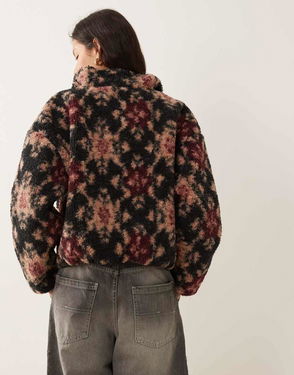 Abercrombie & Fitch Zip Up Fleece In Black And Pink Abstract Print