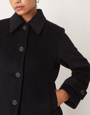 Abercrombie & Fitch Wool Blend Button Through Short Jacket In Black