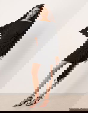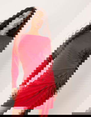 Long Sleeve Slash Neck Asymmetric Hem Mini Dress