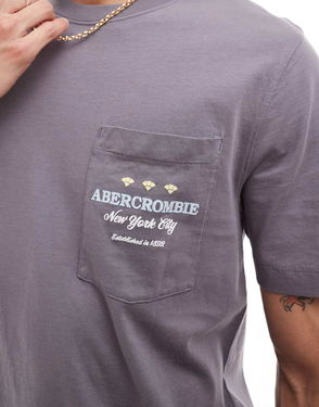 Abercrombie & Fitch Tile Inspired Logo Pocket And Back Print Classic Fit T-shirt In Mid Grey