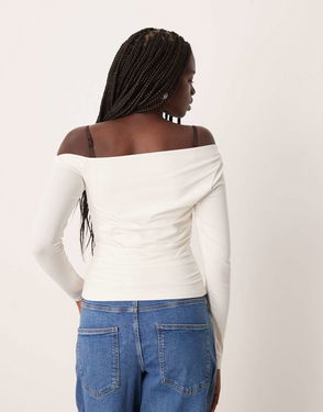 Abercrombie & Fitch Asymmetric Twist Long Sleeve Top In Cream