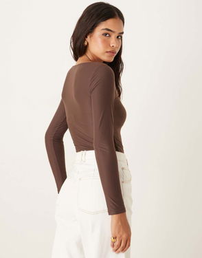 Abercrombie & Fitch Long Sleeve Bodysuit With Bra Insert In Brown