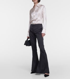 Crochet-Trimmed Cotton-Crepe Flared Pants