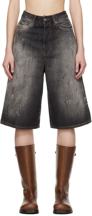Washed Paint Splattered Faux Shearling Denim Jacket