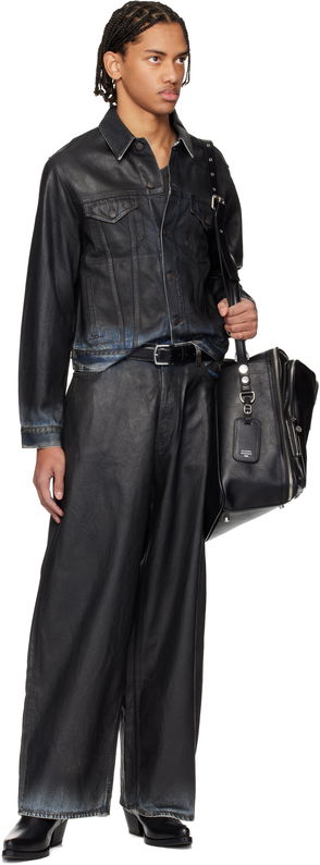 Washed Paint Splattered Faux Shearling Denim Jacket