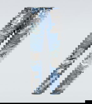 Distressed Printed Barrel-leg Jeans
