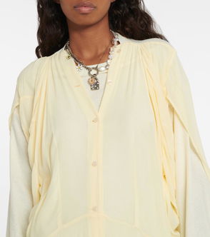 Lace-Up Ruffled Hammered-Crepe Mini Dress