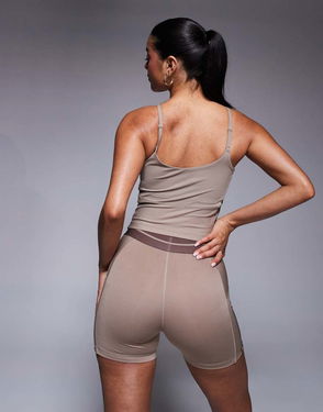 Training Hyperglam Rib Strappy Vest In Chalky Brown