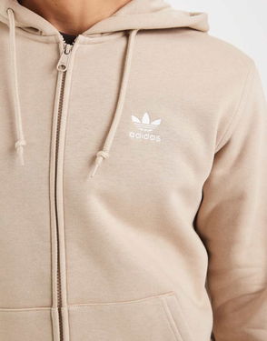 Trefoil Essentials Full-zip Hoodie In Stone Khaki