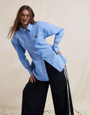 X ASOS Cinched Shirt With Shoulder Pads In Blue