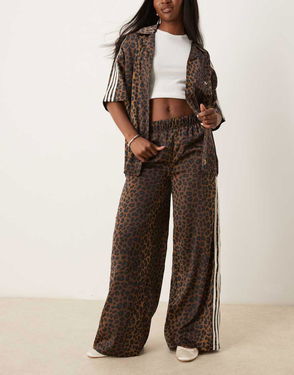 Satin Wide Leg Track Pants In Black Leopard Print - MULTI